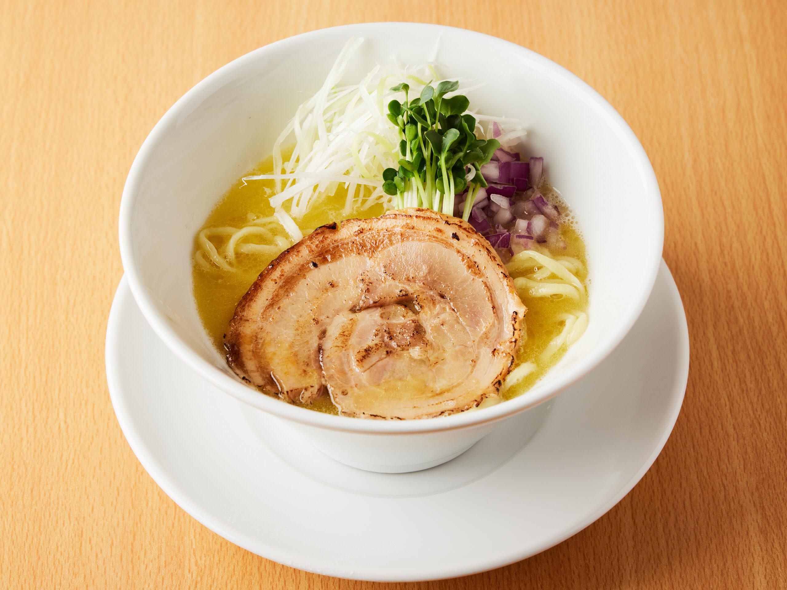 さっぱりとした味わいが好評の「塩らーめん」もおすすめです。こだわりぬいた自然藻塩使用し、からだに優しくもコクのある塩ダレと丁寧にじっくりと煮込んだ鶏白湯をブレンド。水、野菜、国産鶏のみで炊いたスープのコクと旨味が活かされた一杯です。また、九州産の豚肉を低温でゆっくりと仕上げたチャーシューも絶品。トッピングも様々ご用意しておりますので、お好みに合わせてどうぞ!